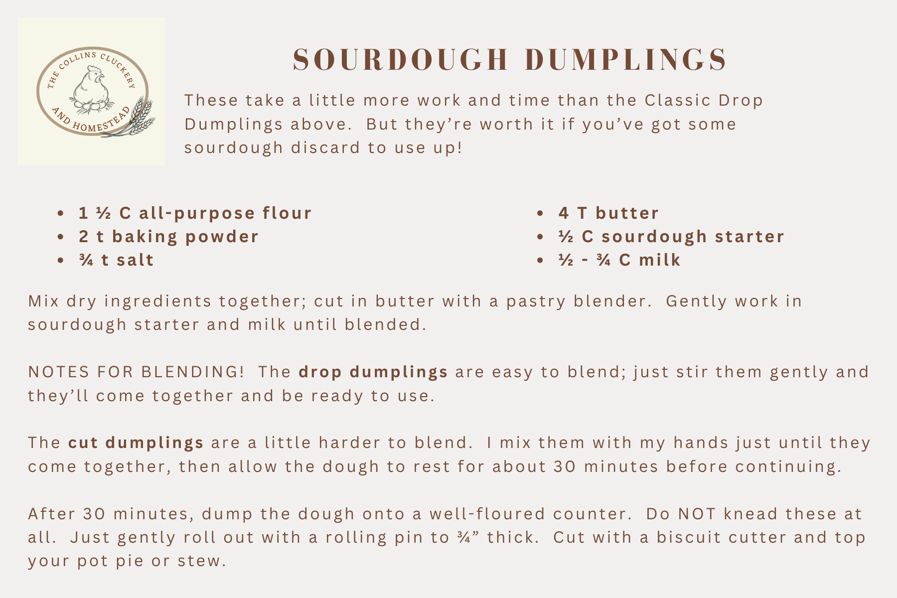 Technicalities: the bane of a cook’s existence.🙄 I do realize that my “Sourdough Cut Dumplings” aren’t really dumplings at all but biscuits. Arggh! It’s like when people ask me the difference between chicken broth and chicken stock. Ummm..depends on whom you ask! Personally, I use the terms interchangeably.