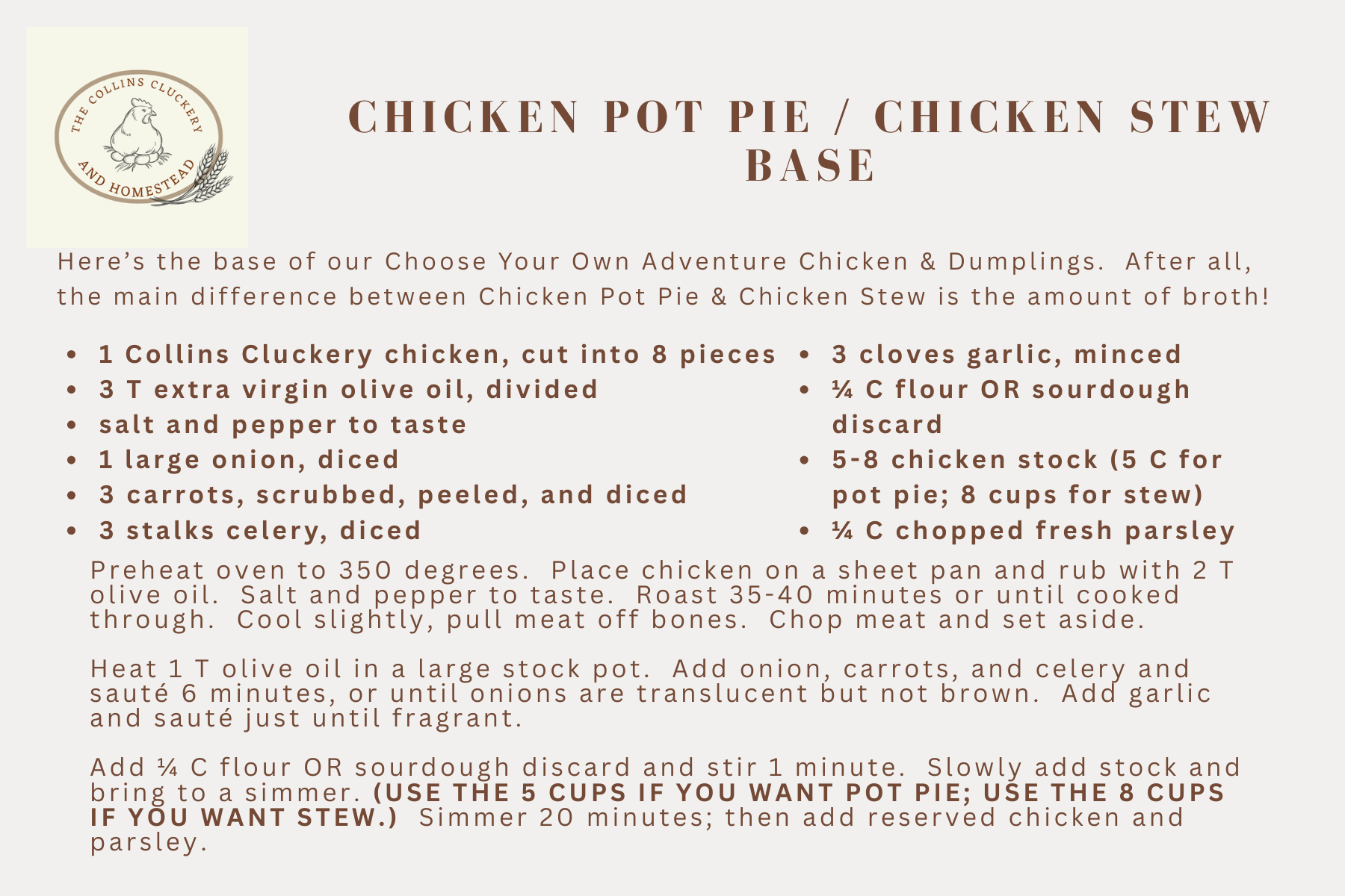 Chicken Pot Pie OR Chicken Stew Base